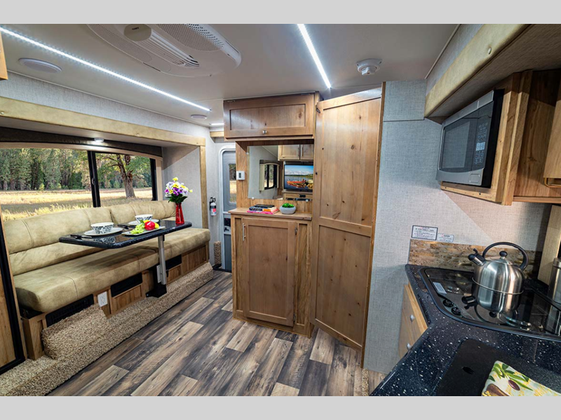 Sleeps 5 Slides 3 Length 19 ft 3 in Ext Width 8 ft Ext Height 9 ft 5 in Int Height 6 ft 6 in Interior Color Smokey River, Pecan Dry Weight 3955 lbs Fresh Water Capacity 65 gals Grey Water Capacity 51 gals Black Water Capacity 32 gals Furnace BTU 25000 btu Available Beds Queen Refrigerator Type Double Door Two Way Refrigerator Size 8 cu ft Cooktop Burners 3 Floor Length 11 ft 4 in LP Tank Capacity 15 gals Water Heater Capacity 6 gal Water Heater Type DSI Gas Truck Bed Size Long Body Style Hard-Side Shower Type Standard Similar Floorplans